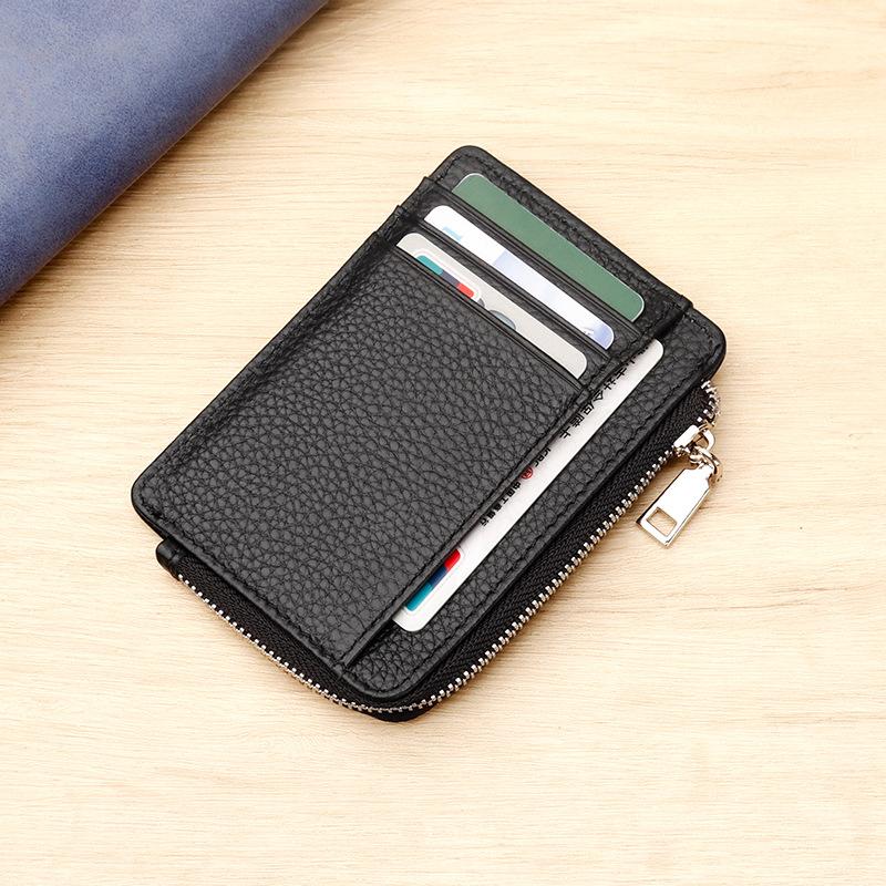 Premium Genuine Cow Leather Slim Card Holder Wallet with RFID Blocking and Zipper Coin Pocket