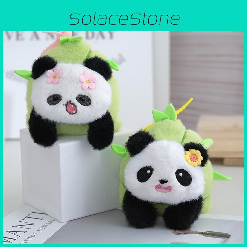Charming Panda Floral Plush Toy Backpack Cute Keychain Doll Stuffed Animal For Collectors