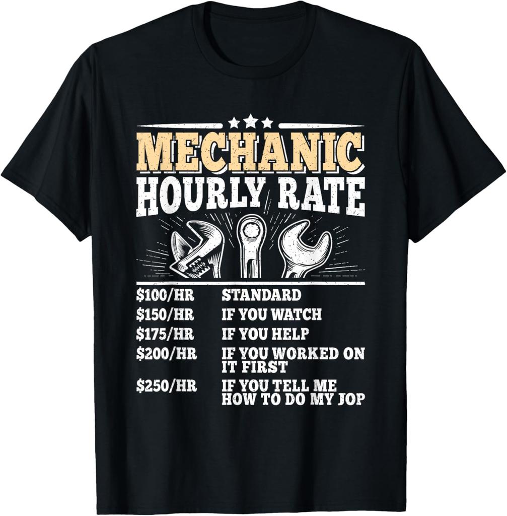 Mechanic Hourly Rate Funny Repair T-Shirt Graphic Mechanic Auto Technician Men Tee