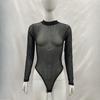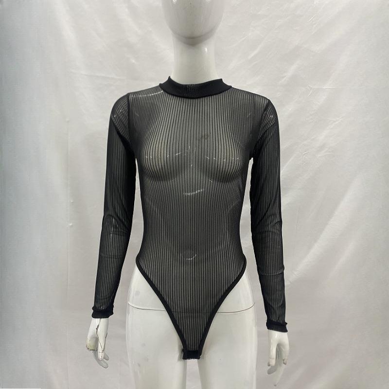 Summer Retro Sexy See Through Striped Mesh Slim Fitting Jumpsuit for Women