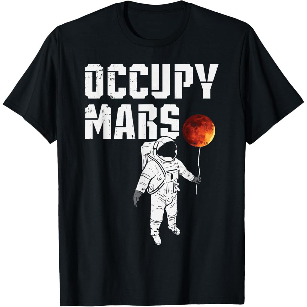 Occupy Mars Balloon Astronaut Funny Outer Space Planet T Shirt Men Humor Streetwear Tee Shirt Short Sleeve Unisex Loose Clothing