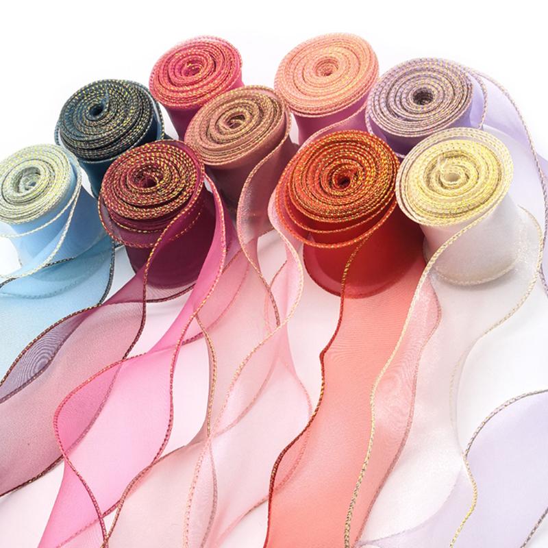 10Yards Organza Solid Color Ribbon 4Cm Wavy Edge Ribbon For For Flower Bouquet Gifts Packaging Party Decorations Diy