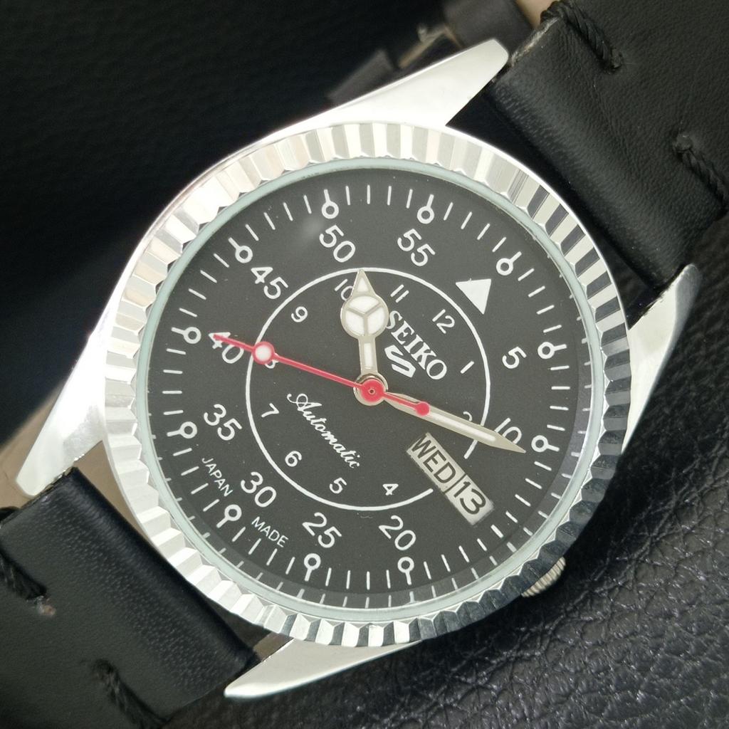 JAPAN VINTAGE REFURBISHED SEIKO 5 AUTOMATIC 6309A MENS BLACK WATCH A442977-1