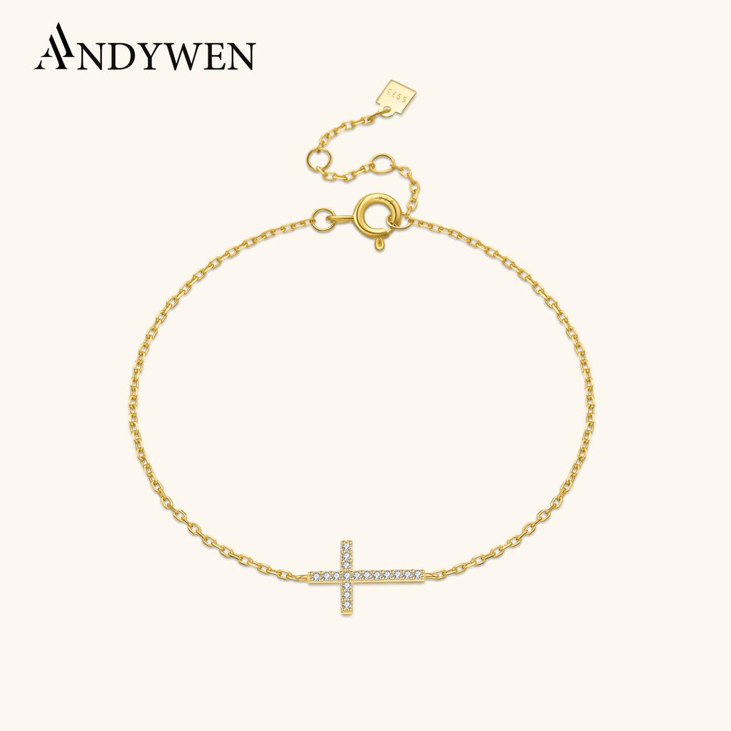 ANDYWEN 925 Silver Cross Pendant CZ Zircon Bracelet Chain Classical New Luxury Fine Gift Jewelry for Women