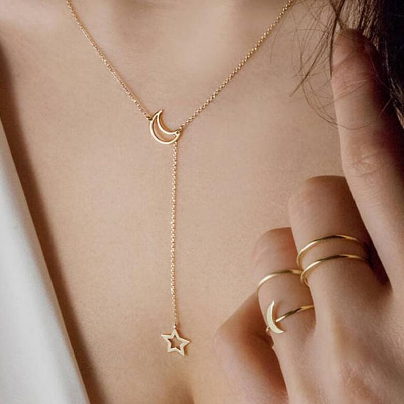 New Fashion Jewelry Star Moon Choker Necklace Gift For Women Girl Gold Color Chain Hollow Star Pendant Necklace