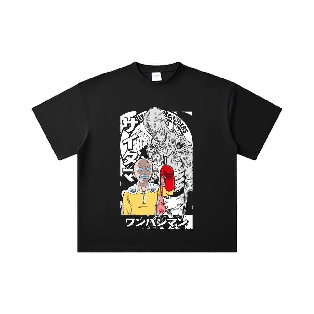 260 GSM Double Yarn 32 Count 100% Cotton One Punch Man V6 Saitama Print Unisex Heavy Cotton T Shirt