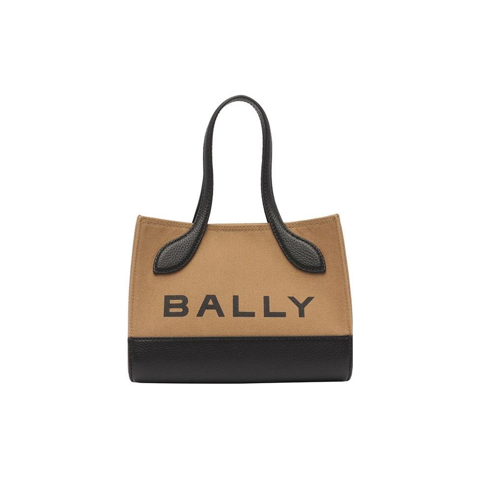 Bally Large Logo Casual Magnetic Closure Fabric And Leather Tote Bag Women Tote Sand Black 6304584