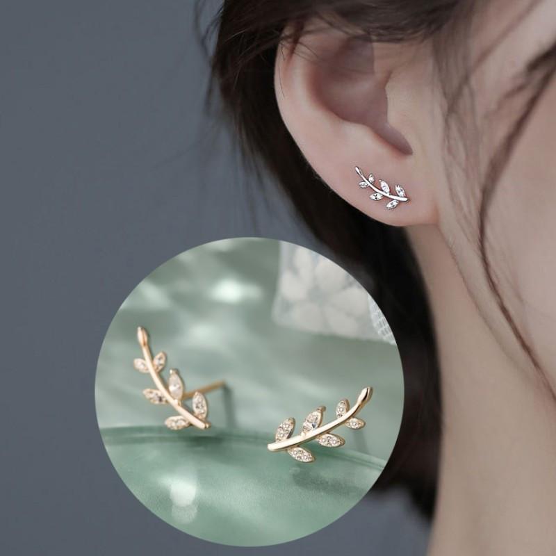 Fashionable and Luxurious Women's Leaf Branch Imitation Zircon Earring Earrings