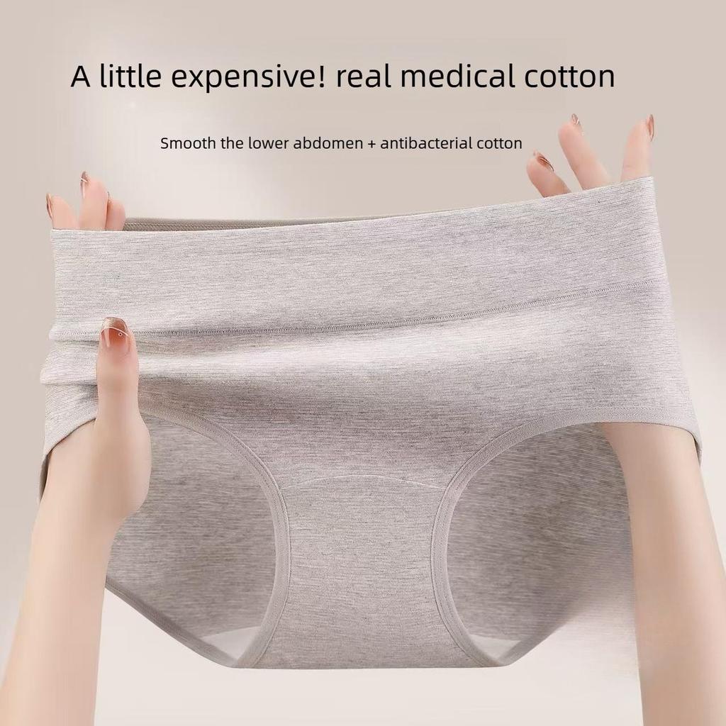 Ladies Spring and Autumn Simple A Class Colored Cotton Extended Crotch Light Abdominal High Waist Briefs