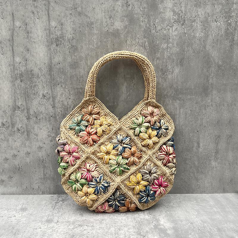 Handmade Crochet Flower Straw Bag Bohemian Raffia Beach Bags for Women Handbag Summer Travel Woven Shoulder Bag Cue Shopper Tote