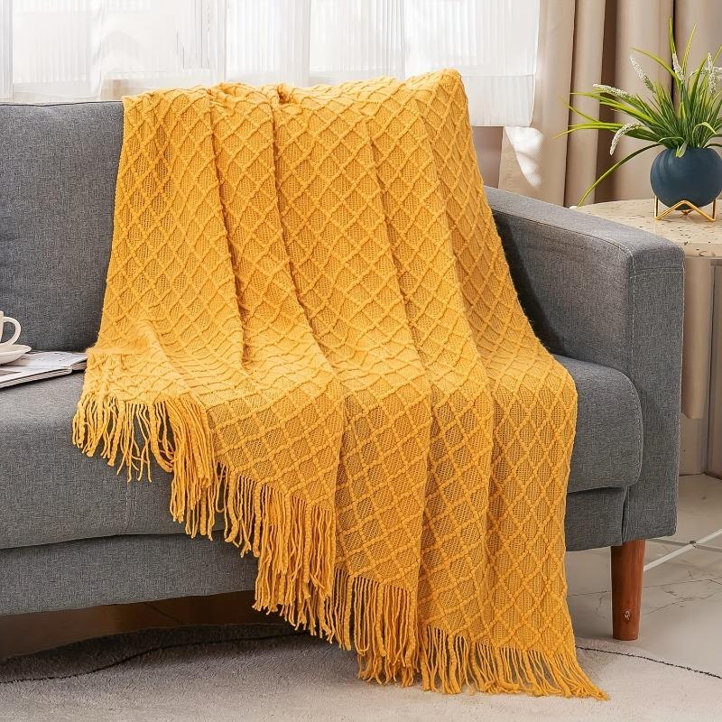 1pcs Nordic Style Sofa Throw Blanket Soft Comfortable Knitted Fringe Blanket Decorative Couch Bed Cover Blanket 127x172cm