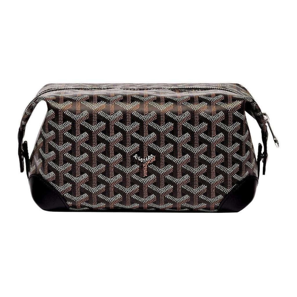 Goyard Monogrammed Zippered Canvas And Calfskin Travel Toiletry Bag Unisex Toiletry Bag Black BOEING025TY-01CL01P
