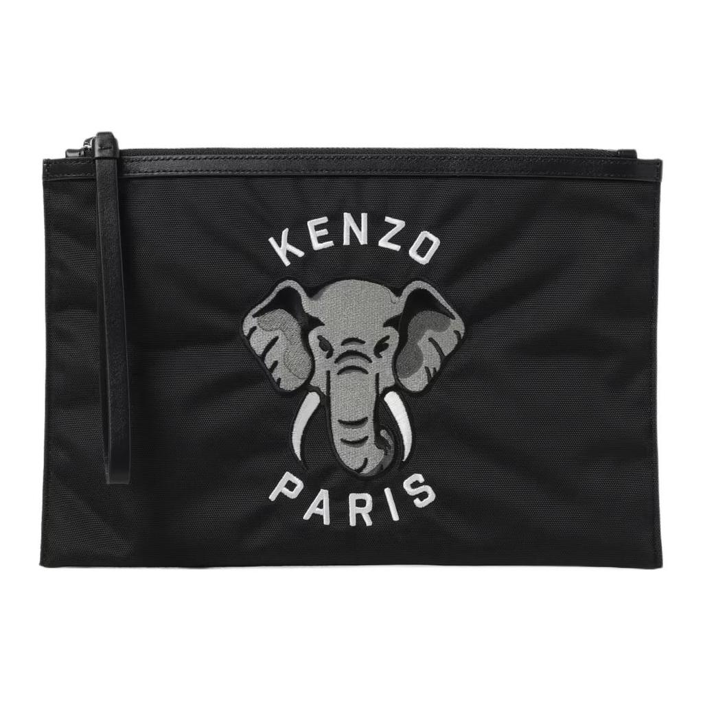 Kenzo Varsity Zipper Closure Polyester Wristlet Clutch Large Men Clutch Black FE55PM612F2199