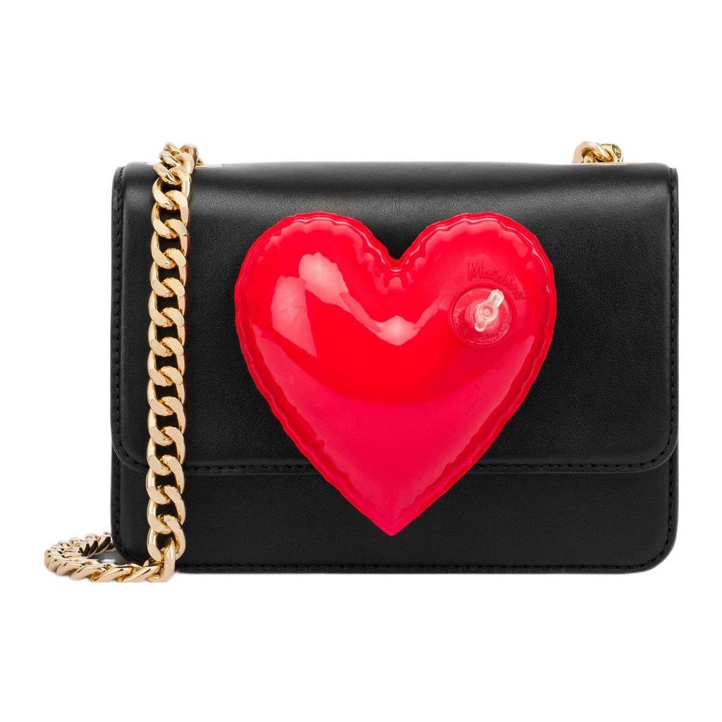 Moschino Heart Shaped Decorative Air Valve Leather Crossbody Shoulder Bag Women Bags Black 731880081555