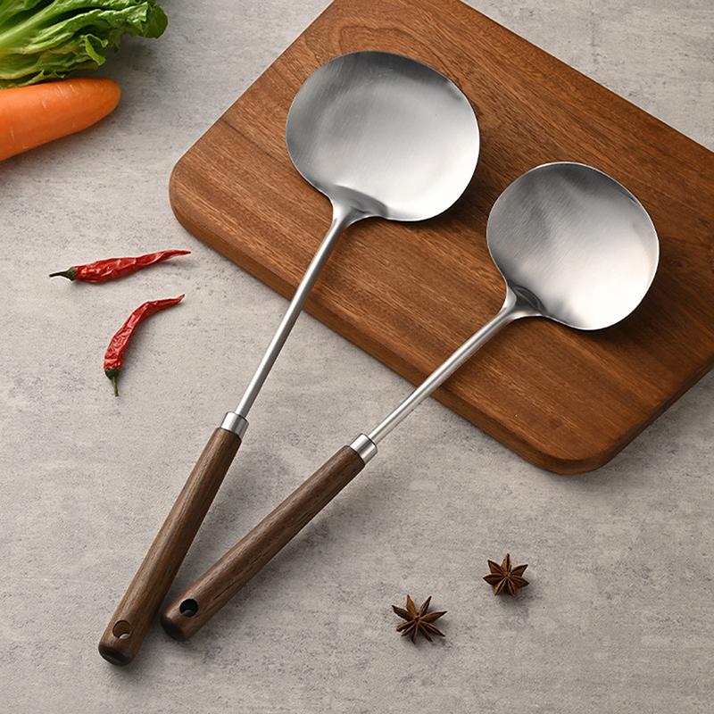 Stainless Steel Wok Spatula Chef-Specific Cooking Spoon Wooden Long Handle Mushroom Shovel Kitchen Cooking Utensils