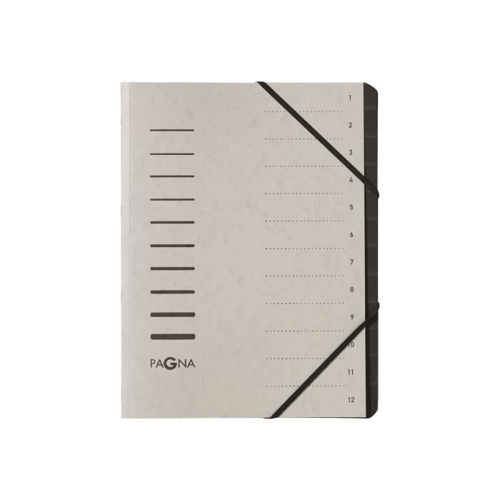 Pagna Office Trieur 12 compartiments 12 positions A4 à onglets gris clair