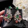 Vine Mermaid Tears Apple Emerald Water Drop Earrings, Lemonade Pear Plated 18K Gold Olive Green Zircon Flower Earrings