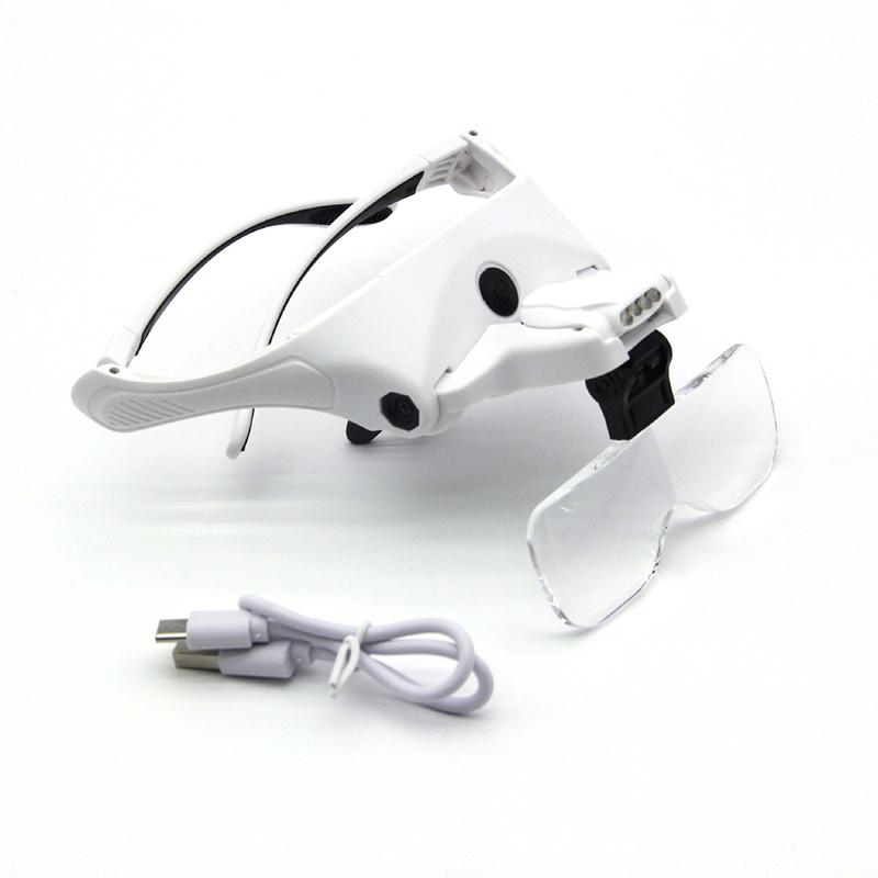 Head Mounted Optical Magnifier Eyeglasses Power Display LED Watch Repair Magnifier Large Capacity Battery Interchangeable Lenses