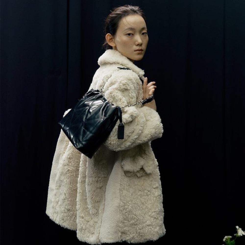 The Glam Shoulder Bag Medium LW3AD4940_10 is crafted from soft cowhide, showcasing luxurious shine. The boxy silhouette creates a casual yet feminine mood, featuring Joie Grayson's twist chain detail and unique blend design. The top opening utilizes a padding technique for easy closure and opening, while its ample storage and lightweight design make it ideal for daily use. The adjustable strap allows for various styles as a shoulder or crossbody bag.