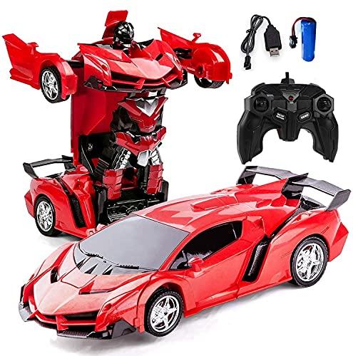 Multifunctional Transforming Toy Car, RC Car, Remote Controlled Robot Toy, 2 In 1, Remote Control, Transformable, Rechargeable Battery (Red)