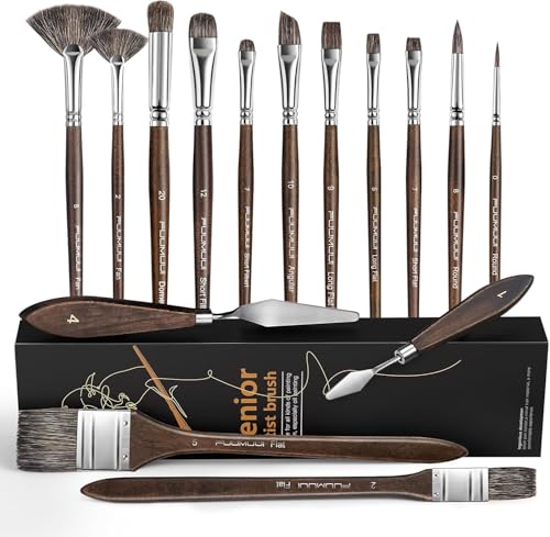 Variety of Shapes and Sizes - This set includes 13 brushes and 7 series (large wide flat, flat, filbert, fan, round, angled, and rigger) as well as two palette knives. The diverse sizes allow you to transform any creative vision into reality, from large-scale works to detailed drawings.