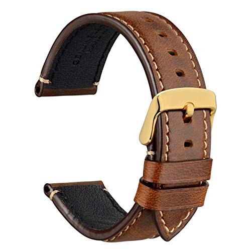 WOCCI 18mm Vintage Leather Replacement Watch Strap, Retro Genuine Leather Watch Band with Gold Buckle (Golden Brown)