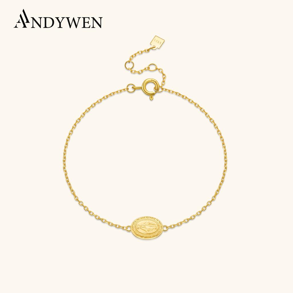 ANDYWEN 925 Silver Gold Virgin Mary Charm Chain Bracelet Luxury Women Fashion Exquisite Fine Punk Jewelry