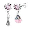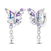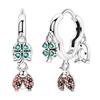 Genuine 925 Silver Love Feather Earrings Fit Original Charms Hoop For Women Girls Stud Earring Fine Jewelry Gifts