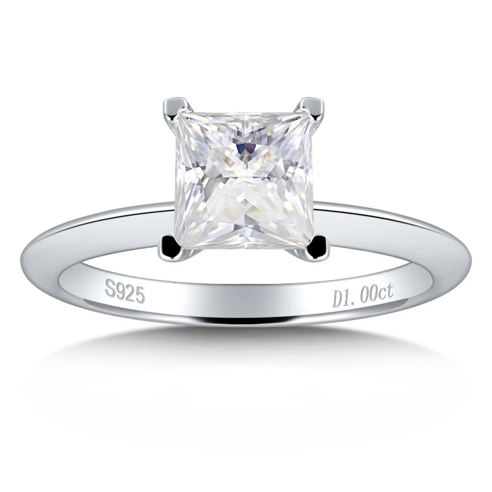M-JAJA 1CT Princess Cut Moissanite Engagement Ring for Women S925 Silver Gold Plated Diamond Wedding Band Fine Jewelry