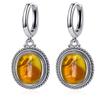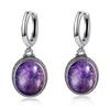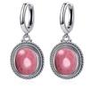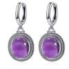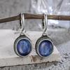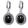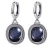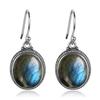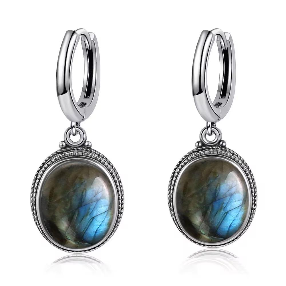 Vintage 925 Silver Natural Labradorite Earrings with Blue Light 10*12mm Big Stone Hoop Earrings Fine Jewelry for Women