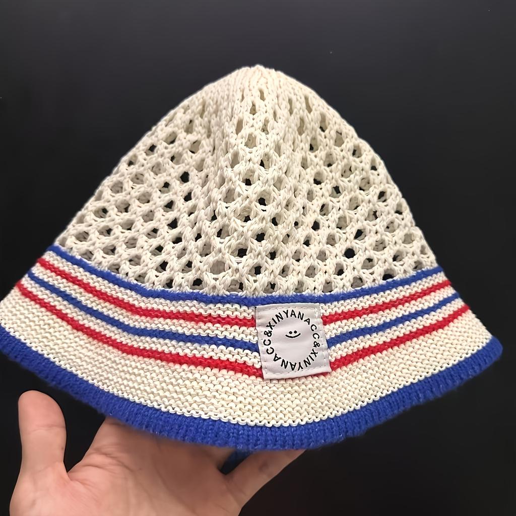 Fashionable Striped Crochet Fisherman Hat | Breathable And Lightweight, Perfect For Outdoor Leisure