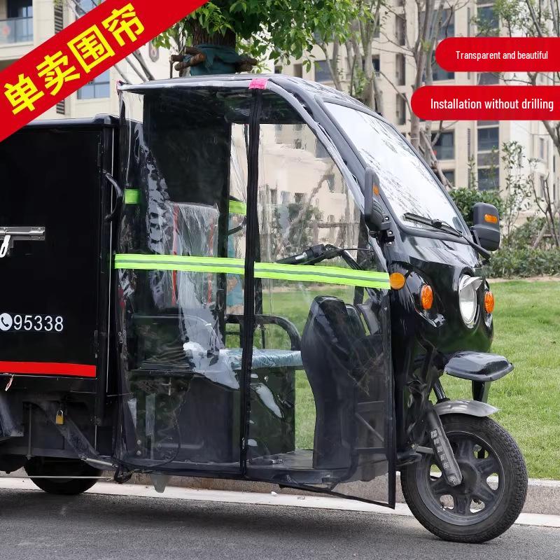 Electric Tricycle Weather Canopy: Transparent Windshield and Rain Curtain for Warmth and Protection