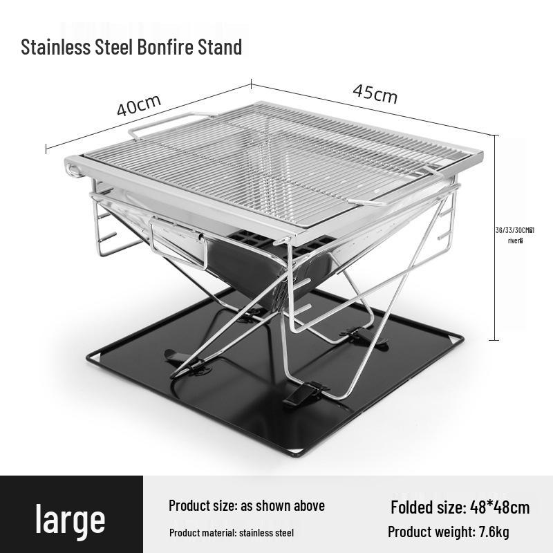 Large Outdoor Stainless Steel Folding Barbecue Grill and Fire Pit for Camping and Picnics