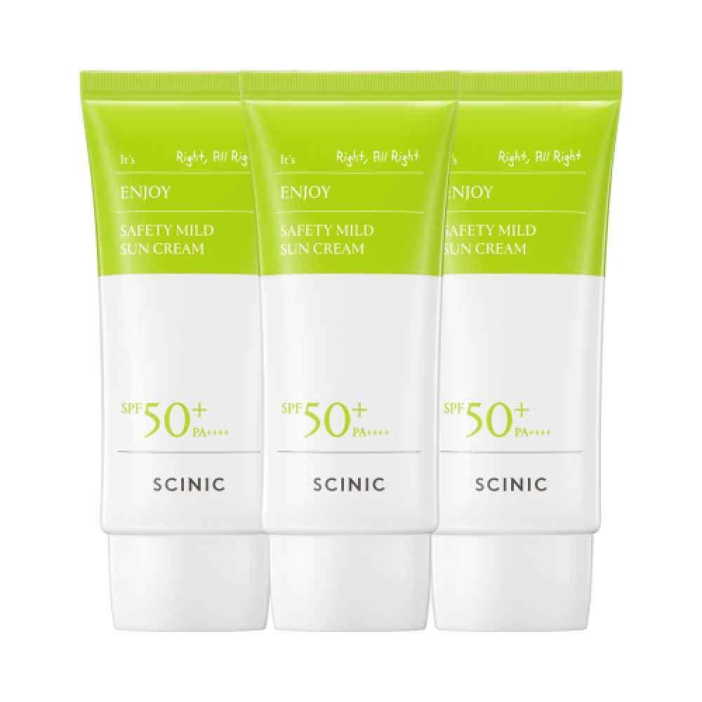 SCINIC Enjoy Safety Mild Sunscreen 50g offers excellent UV protection with SPF50+ PA++++, suitable for sensitive skin. The smooth lotion texture allows it to lightly absorb into the skin, providing hydration and a pleasant, non-greasy finish after application. This product is non-irritating and can be safely used, focusing on fundamental protection and lasting moisture.