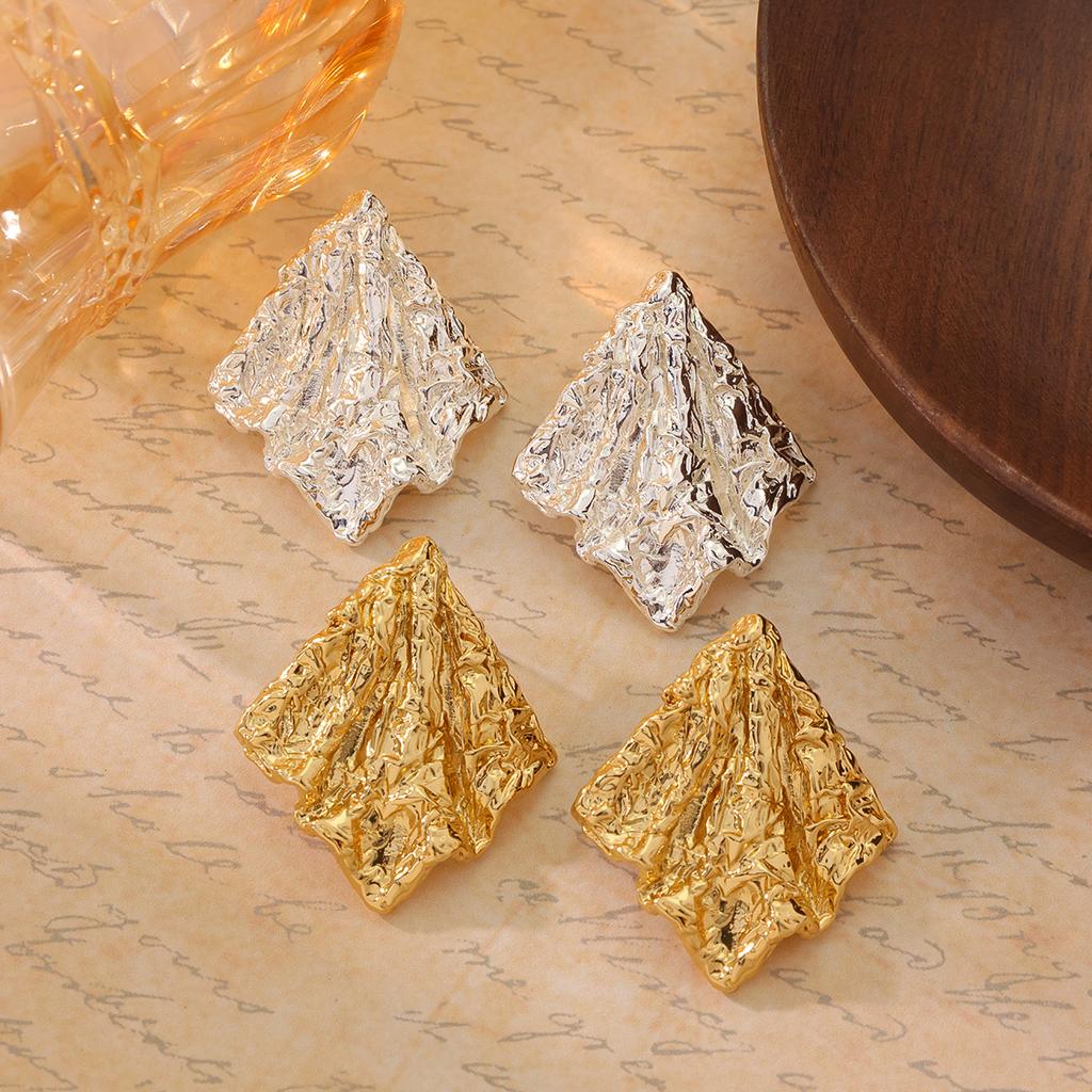 Cross Border Hot Lava 925 Silver Needle Earrings With Folded Electroplating 18k Gold Irregular Geometric