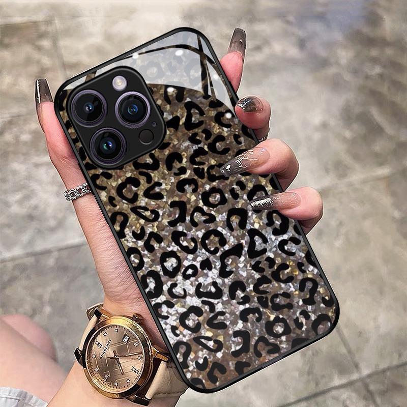 Leopard Print Pattern Glass Material Phone Case For iPhone 17 16 15 14 Pro Max 13 12 11 Pro 17 Air 16E 7 8 Plus XR XS X Cover