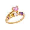 Pink Zircon Heart Rings For Women Gold Plated Stainless Steel Adjustable Heart Ring 2025 Trend Wedding Aesthetic Jewelry Gift