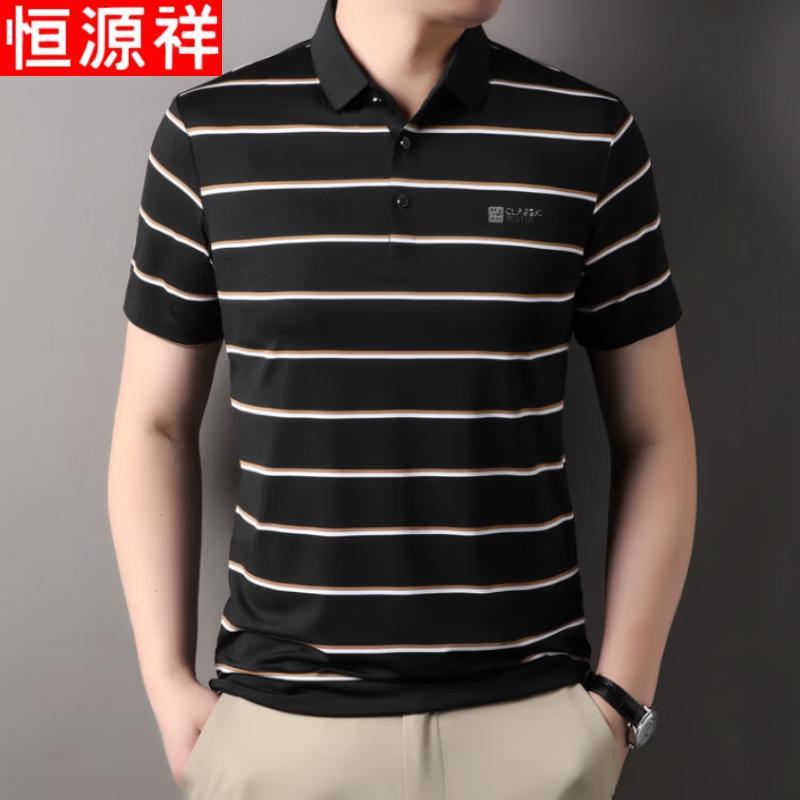 Hengyuanxiang Men's Striped Cooling Summer Polo T-Shirt
