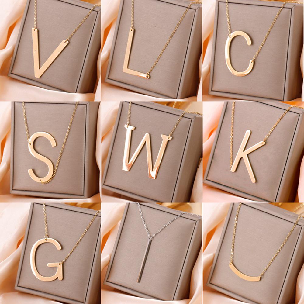 Minimalist Gold Plated Titanium Steel English Letter Pendant Necklace