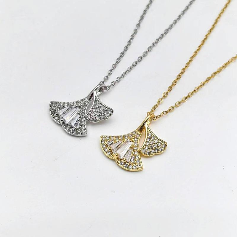 1 Pcs Fashion Copper Pendant with Zircon Leaf Necklace Women's Clavicle Chain Girls' Elegant Accessories