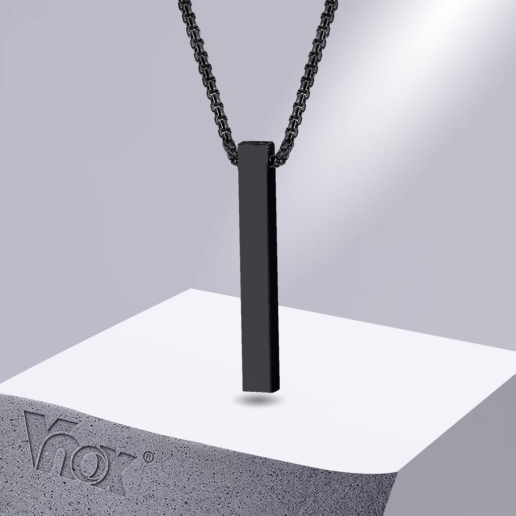 Vnox 5mm Pillar Necklace for Men Women, Stainless Steel 3D Bar Pendant, Minimalist Simple Casual Unisex Neck Collar