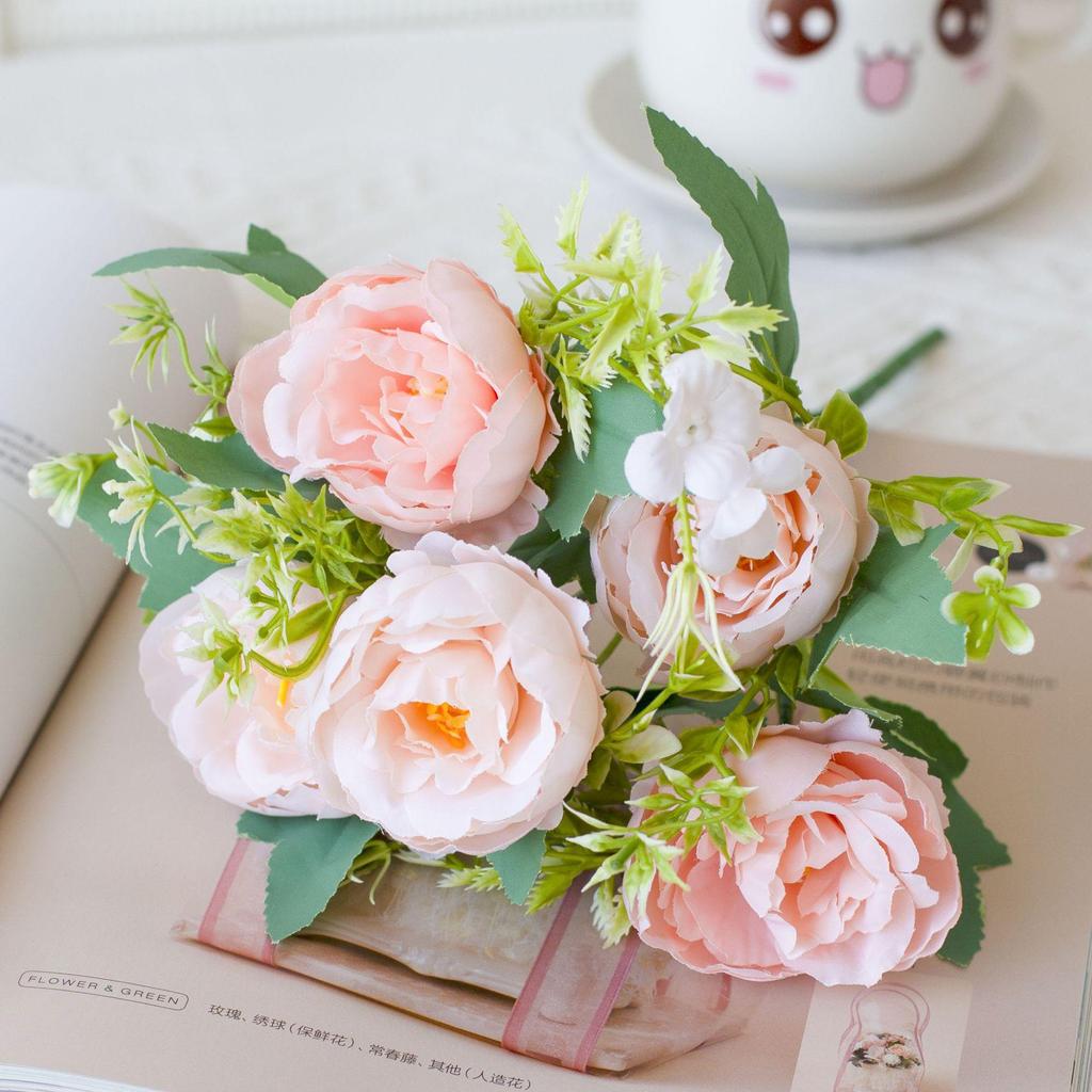 Nordic Peony Wedding Bouquet - Artificial 5-Head Peony for Home Decor
