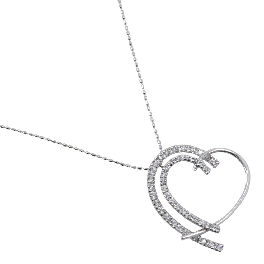 Heart Necklace 14 White Gold/diamond Heart 2.7g Women Used