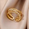 316L Stainless Steel Rings for Women Gold Color Multilayer Geometric Open Ring Vintage Waterproof Wedding Aesthetic Jewelry Gift