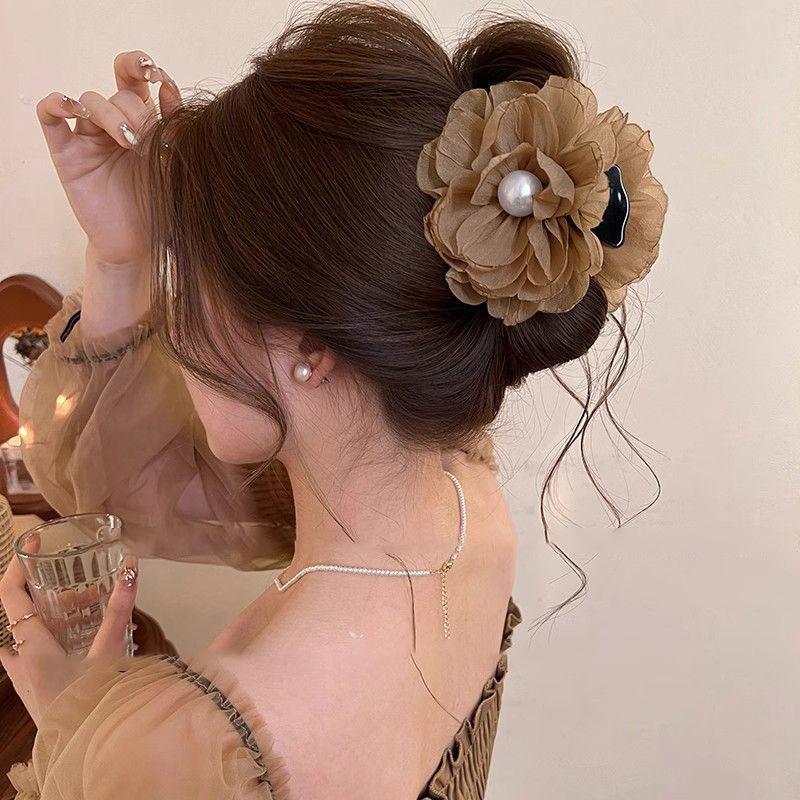 Atmosphere Head Flower Pearl Grasp Clip Women New Gentle Style Shark Premium Back Hair Headpiece