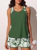 Sporty European-American Style Split Print Tankini: Fat-Concealing Boxer Brief Two-Piece Swimsuit (2026).