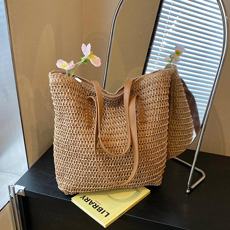Women Top-Handle Bags Straw Summer Beach Straw Bucket Bag Woven Tote Purse Casual Travel Handbags for Women