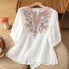 Chinese Style Women's Blouses Embroidered Vintage Shirts Loose Summer Clothing Short Sleeved Cotton Linen Women Tops