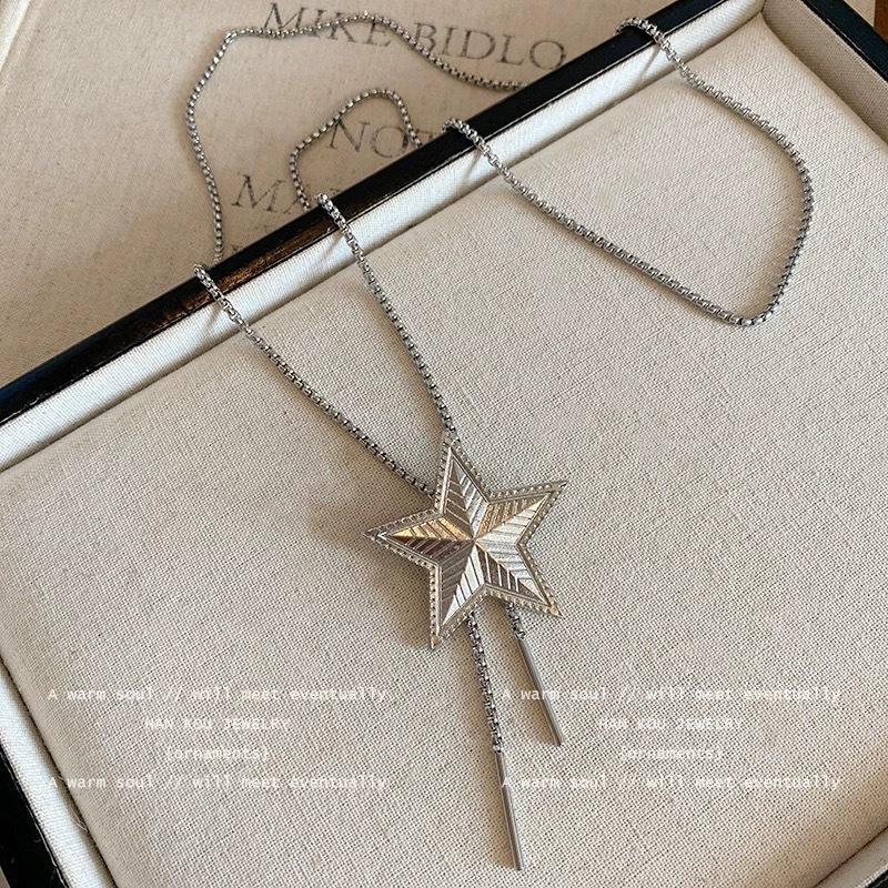 Mangxing Double-layer Necklace Trendy Light Luxury Niche Design Sense Hip-hop Style Couple Collarbone Chain Wind Octagram