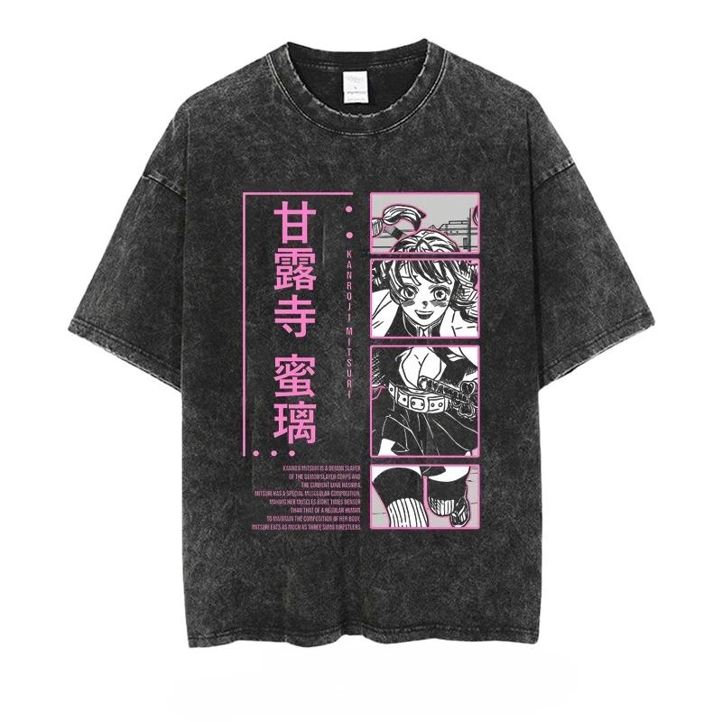 Men's T-shirt Anime Demon Slayer Printed Washed Vintage Loose Fit Women's Short-sleeved Tee Oversized Gym Y2k Clothes Top Summer